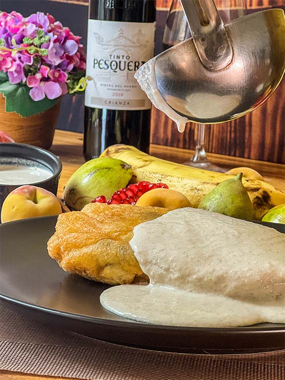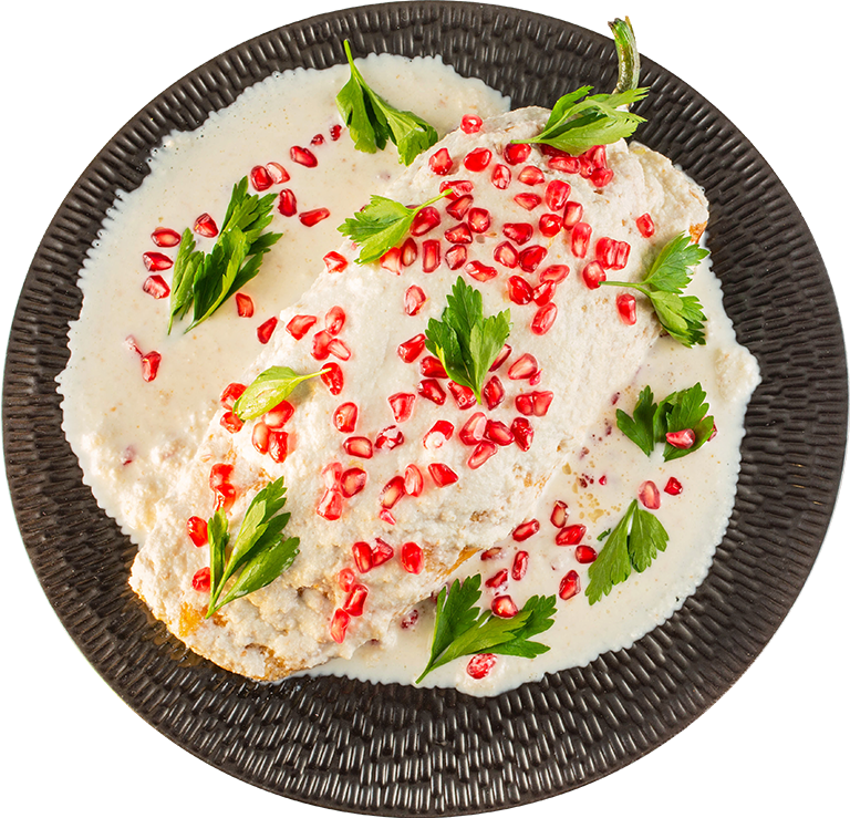 Certificamos que este Chile en Nogada ha sido elaborado únicamente con ingredientes de la región, de la más alta calidad y frescura. Nuestra nogada está elaborada con nuez 100% de Castilla. Las manos expertas de nuestra cocina han puesto todo su esmero, sazón y pasión para ofrecer este platillo con base a la receta original que representa a la incomparable Cocina Poblana, patrimonio intangible de la Humanidad.